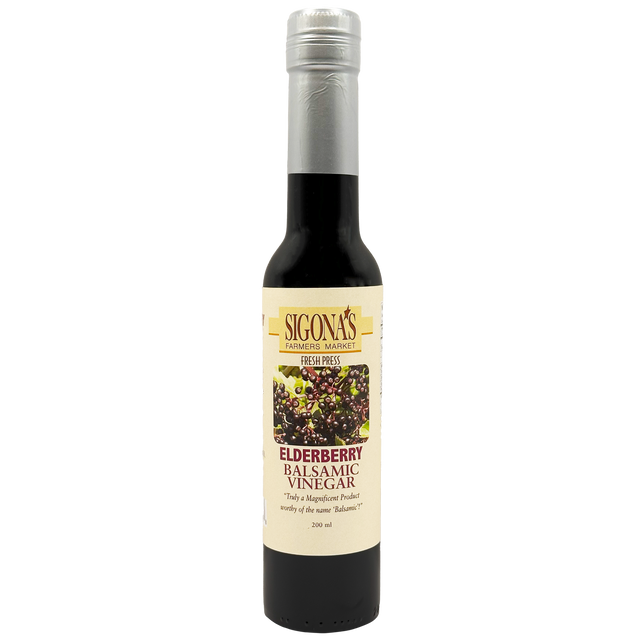 Tart, rich and sweet, our elderberry balsamic is a taste sensation with zesty hints of the tart and earthy berries.