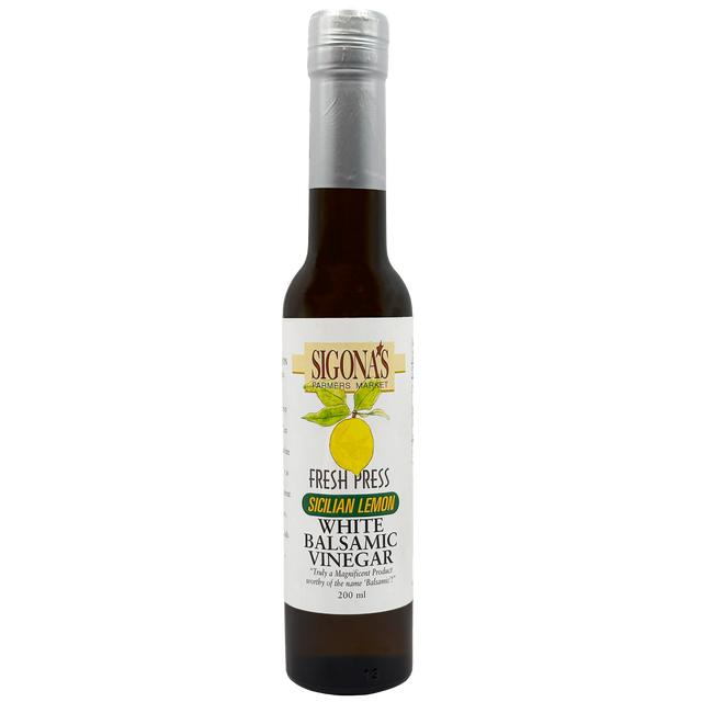 Pleasantly sweet yet playfully tart, this Sicilian lemon white balsamic has a perfectly balanced acidity and a crisp, lemony flavor and aroma. It is terrific with seafood, dark leafy greens or radicchio, in dressings or in a mixed drink.
