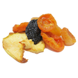 A mix of deluxe dried fruits grown in California. May include some or all of the following: dried apples, colossal Moyer prunes, jumbo dried peaches, dried Bosc pears, dried Blenheim apricots.