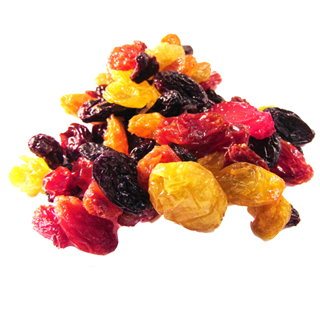 Contains: sun-dried jumbo crimson raisins, Thompson raisins, black raisins, vegetable oil, sulfur dioxide.