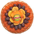 Round basket full of our best mixed fruit including the king of all dates, the Medjool. Features dried heirloom Blenheim apricots, dried peaches, dried pears and Medjool dates. All California grown.