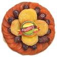 Round basket tray full of our best mixed fruit including the king of all dates — the Medjool. Features dried heirloom Blenheim apricots, dried peaches, dried pears and Medjool dates. All California grown.